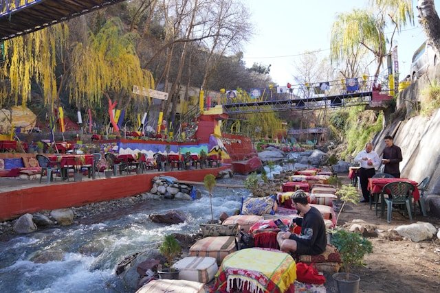 Après la visite de la maison berbère, nous poursuivrons notre route jusqu’à Setti Fatma, à 65 kilomètres au sud de Marrakech. Ce charmant village offre de nombreuses possibilités de promenades. La randonnée en montagne la plus typique est celle qui mène à une cascade à sept chutes.